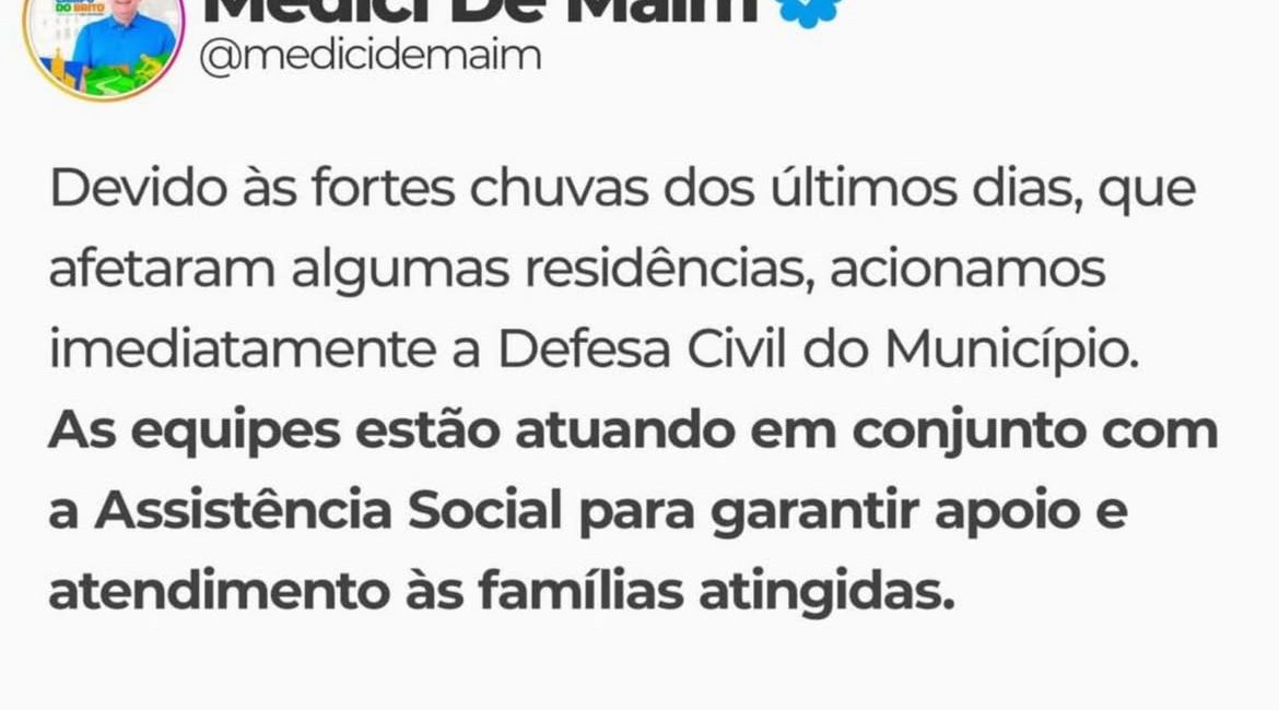 As fortes chuvas registradas nos últimos dias em Campo do Brito provocaram transtornos e atingiram algumas residências do município. Diante da situação, o prefeito utilizou suas redes sociais para informar que a gestão municipal acionou imediatamente a Defesa Civil, garantindo resposta rápida às ocorrências. De acordo com a nota,...