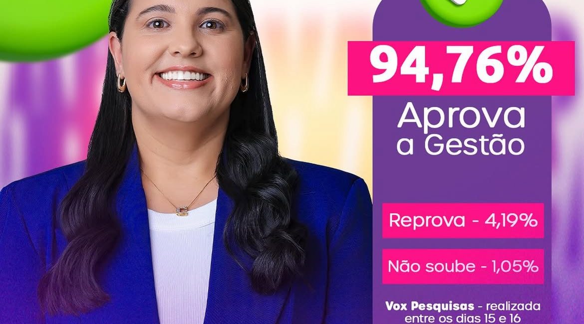 A administração da prefeita Cleane de Éverton, em São Miguel do Aleixo, recebeu 94,76% de aprovação popular, segundo pesquisa realizada pela Vox Pesquisas nos dias 15 e 16 de agosto. O levantamento apontou ainda que 4,19% da população desaprova a gestão e 1,05% não soube responder. A prefeita destacou...